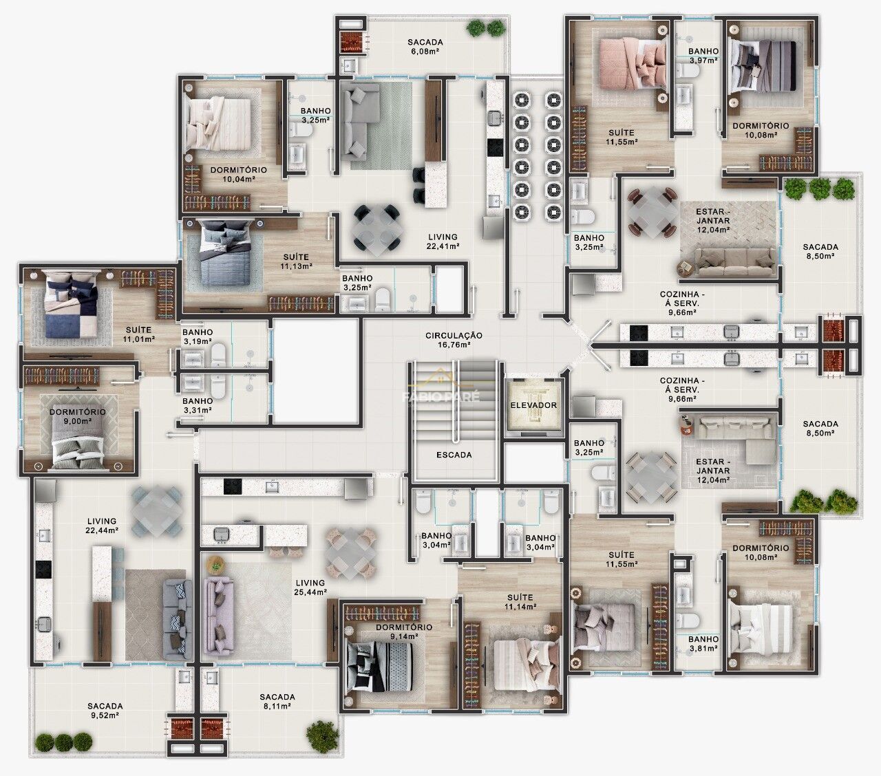 Apto 204 – 71.35 m² (superior) – 2 quartos c/ suíte - R$ 643.990,00 vaga nº 10